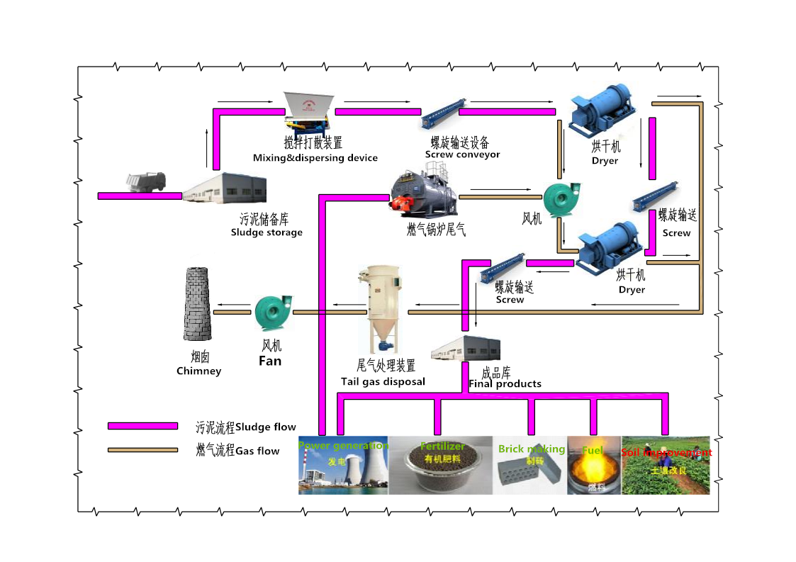 Waste heat utilization is a kind of mature and stable technology developed by our company. It can use waste heat produced from boiler, power generator and other combustion processes as heat source of the drying system. In the year of 2009, our company carried out the first step to use waste heat from large-scale petrochemical enterprises, which cannot only solve sludge disposal problem, but also can reduce fuel consumption quantity. This drying system brings great profits to many enterprises.